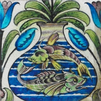 William De Morgan card of a fish bowl tile